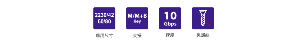 支援2230 / 2242 / 2260 / 2280 四种尺寸。 |