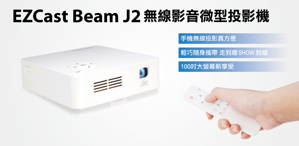 EZCast Beam J2 无线影音微型投影机是一款迷你、可充电、采用 DLP 技术的投影机。透过 HDMI / USB 接口以及 Wi-Fi,