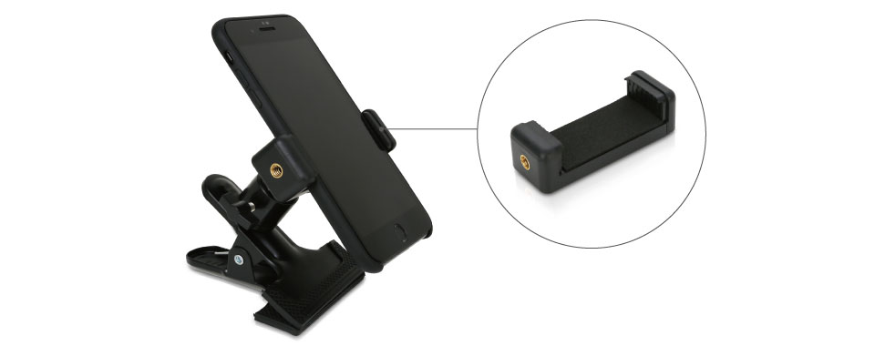 附赠手机夹,适用于6吋以下智能型手机,亦可搭配自拍棒、三脚架使用
