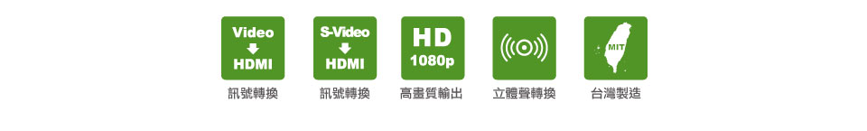 UPF320 是一款模拟转数字的讯号转换器,可将 Video 或 S-Video 影音端子来源讯号转换为 HDMI 讯号,同时包含立体声声音转换,倍频扫瞄 输出至 HDMI 显示器显示 。