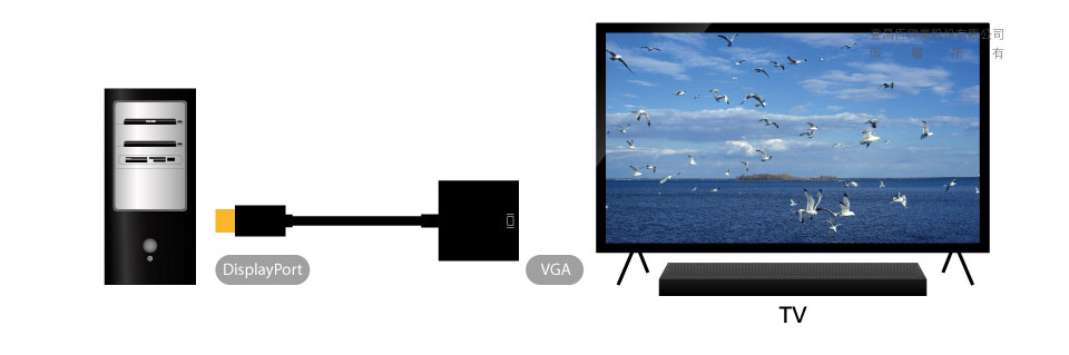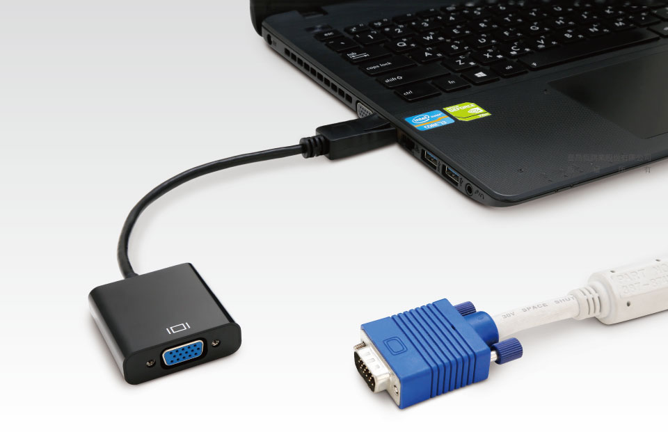 可将Displayport接口转换为VGA接口,连接计算机屏幕、液晶电视或投影机。 |