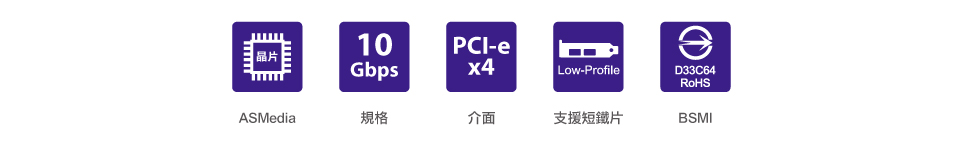 使用 ASmedia 芯片,PCI-e x4 接口。 |