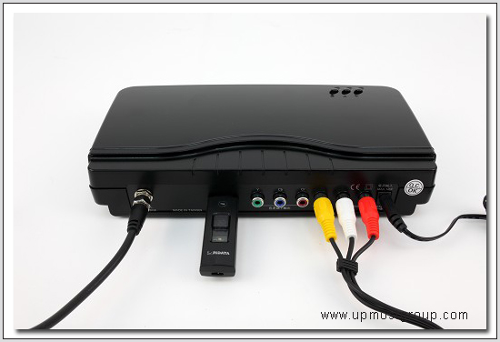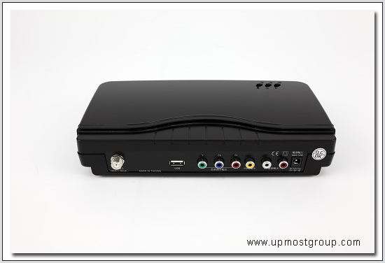 | 8.DTV200本體後方為各端子接口,左起數位天線接頭、USB儲存裝置接頭、色差端子輸出、 AV端子輸出和電源接孔。 |