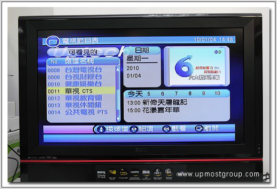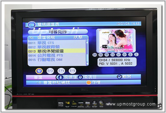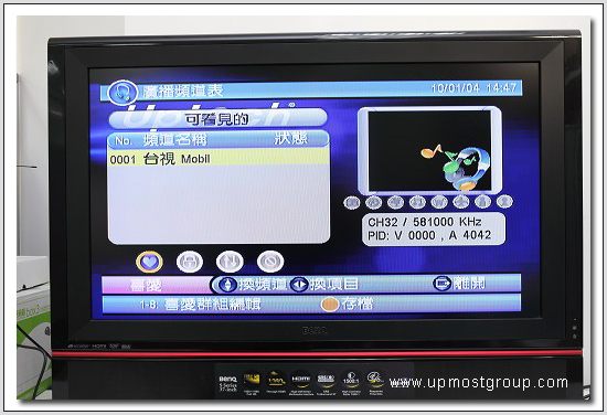| 11.接上電視先按遙控器上的『自動掃描』來掃描數位電視頻道,會收到16個頻道含一台數位廣播, 不過因為這台定位是平價機種,就無法接收那唯一一台的HiHD高畫質頻道了。 |