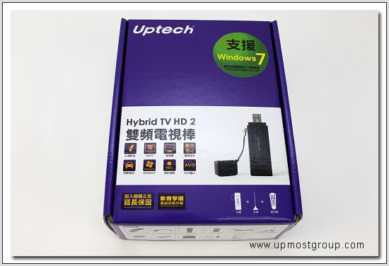 | 1. Uptech Hybrid TV HD 2 雙頻電視棒外盒隨著Windows7在最近的推出,廠商也紛紛標示產品 對其的支援。 |