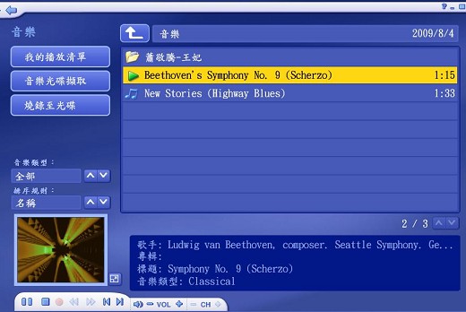 | 14.『音樂』功能除可播放MP3外,還能擷取音樂CD光碟音軌及燒錄至光碟的功能。 | ||||