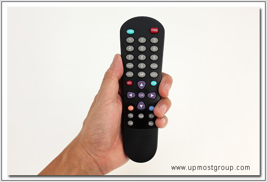 | 4. Uptech Hybrid TV HD 2 遙控器有別於大部份市面電視棒的薄膜攜帶型遙控器,採用較大型 但好握按鍵好按的遙控設計。 |