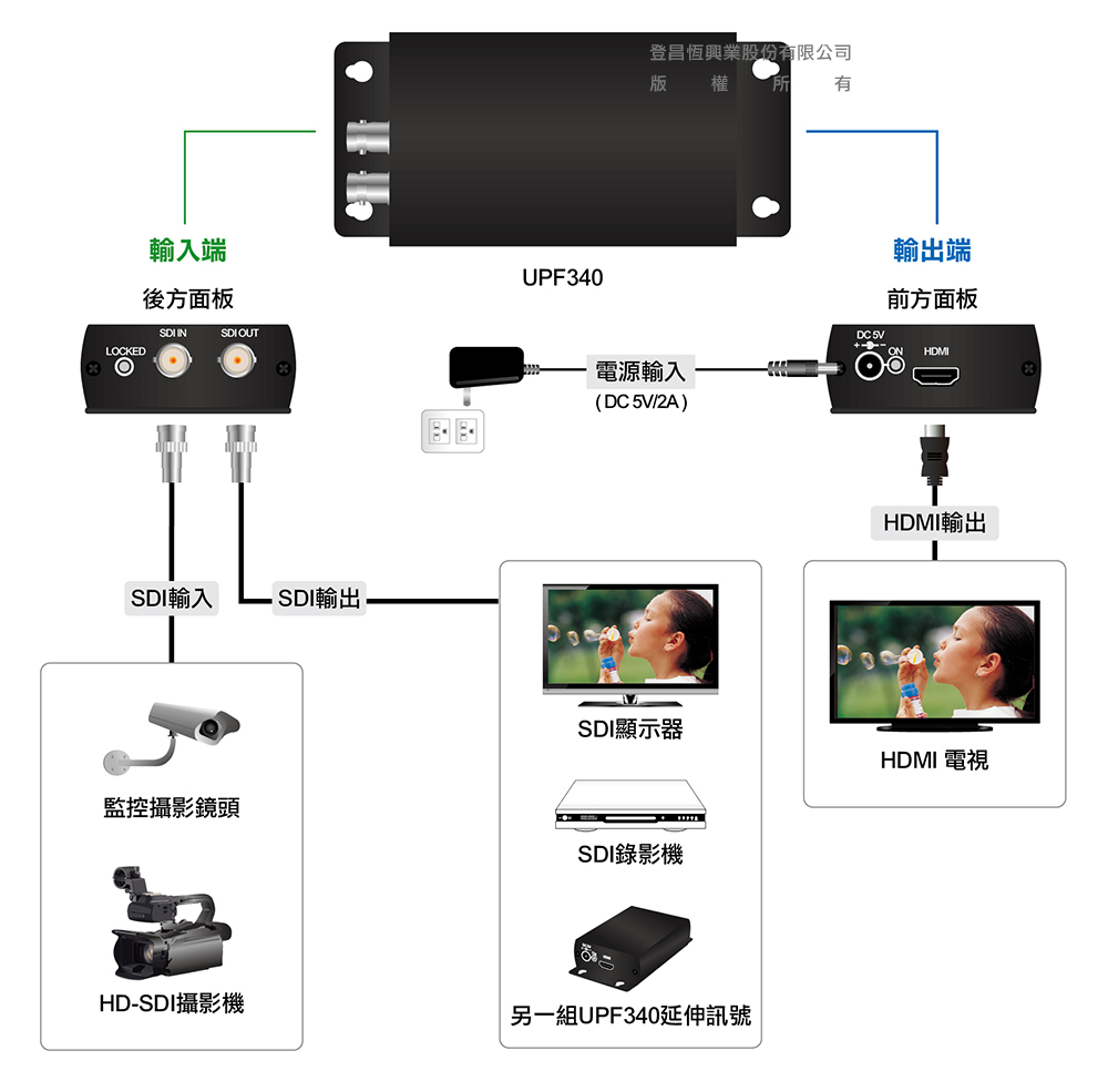 可將3G-SDI / HD-SDI / SDI訊號轉換為HDMI訊號。 |