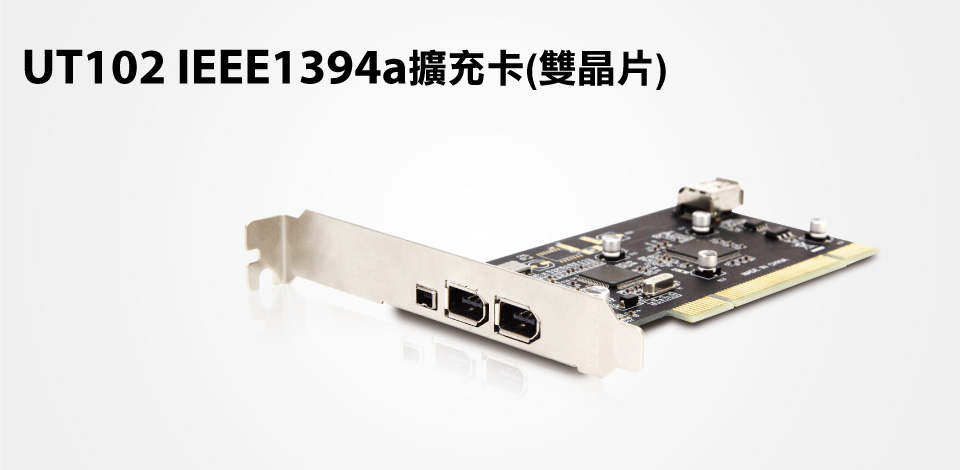 | UT102 本體 x 1 | IEEE 1394線 | 中文快速安裝說明 × 1 | 產品保證卡 x 1 |